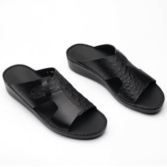 جلد بقر طبيعي أصلي – Genuine Leather – بتصميم Ostrich باللون الأسود الملكي .
