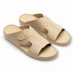 جلد بقر طبيعي أصلي – Genuine Leather – بتصميم Ostrich بلون البيج الفاخر